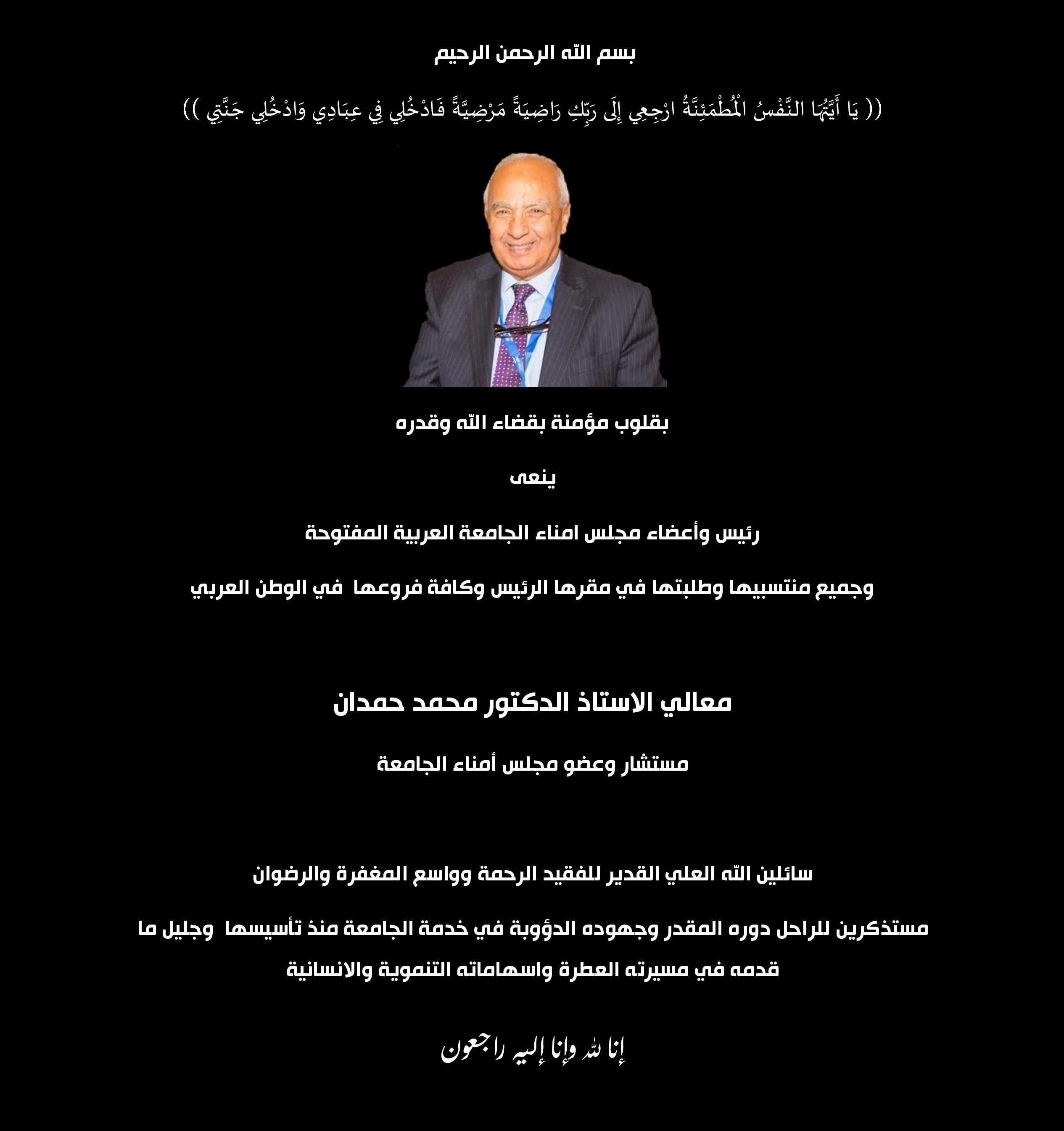 تحت رعاية الأستاذ محمد بن إبراهيم الزكري، رئيس الجامعة العربية المفتوح...